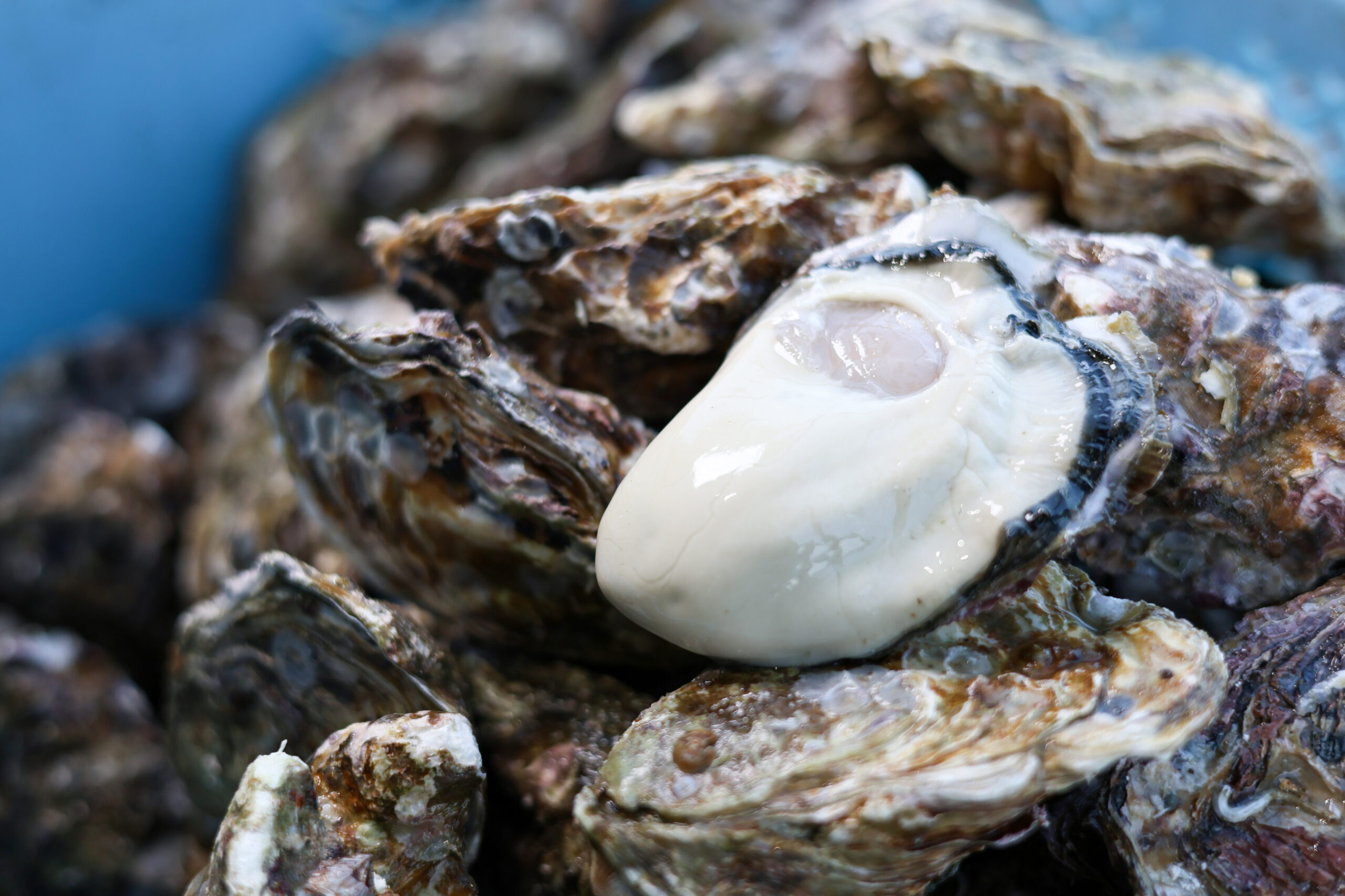 ぶくぶくとオゾンの泡が溶けた浄化水の中で、牡蠣を元気よく呼吸させる。