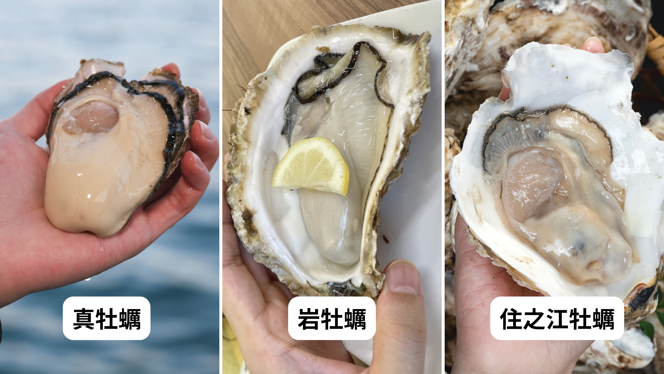 広島牡蠣、厚岸牡蠣、的矢牡蠣。